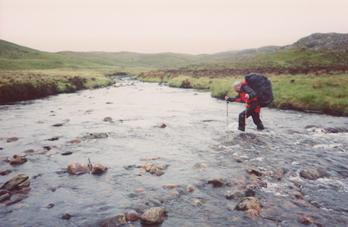 Follow the track E to Achfarry for about 1km then branch NW towards Loch Allt na Ramh, then NE towards Loch an Inneil continuing NE to meet the five degree line. From there strike NW skirting the high ground eventually to turn NE past Loch nan h-Ath to meet a path at the top of Strath Stack. Follow the path NE down to the A838 and Loch Stack Lodge. Camp beyond the lodge.